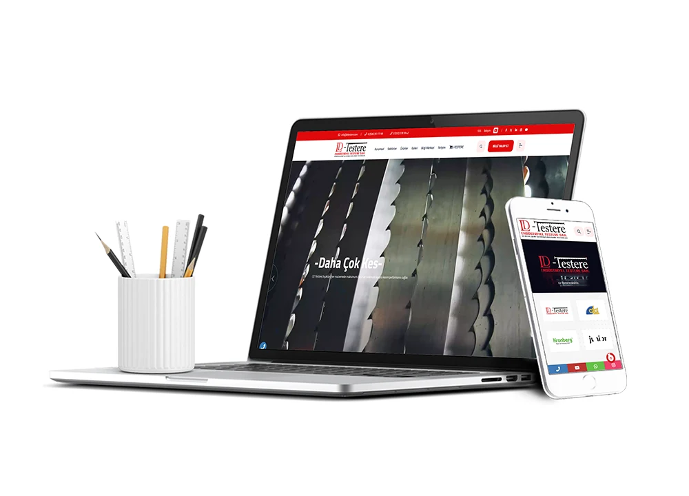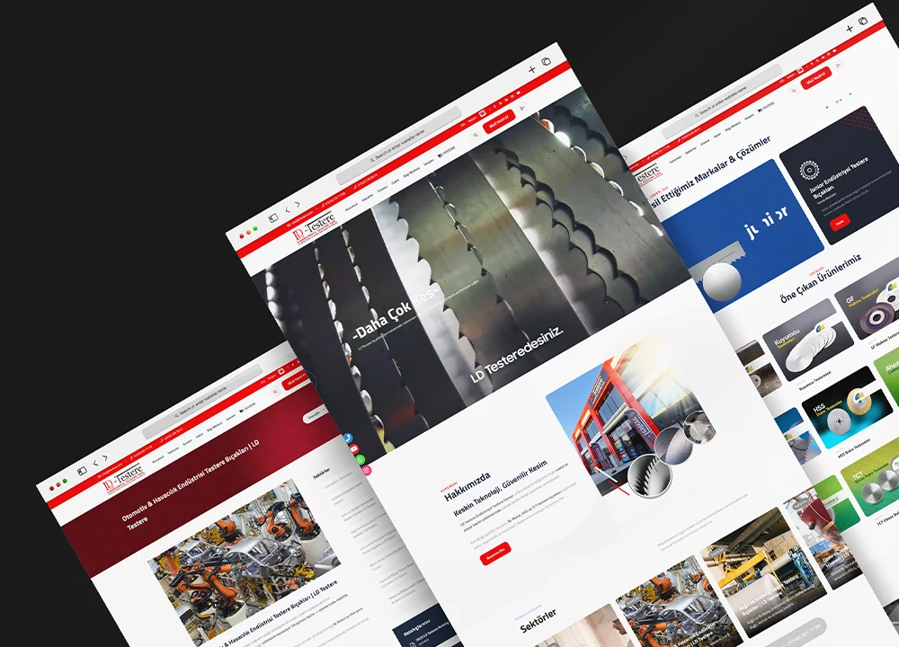 موقع LD Testere المصمم بواسطة MEGATON AJANS يعرض منتجات المناشير الشريطية ثنائية المعدن والمناشير الدائرية بتصميم صناعي حديث.